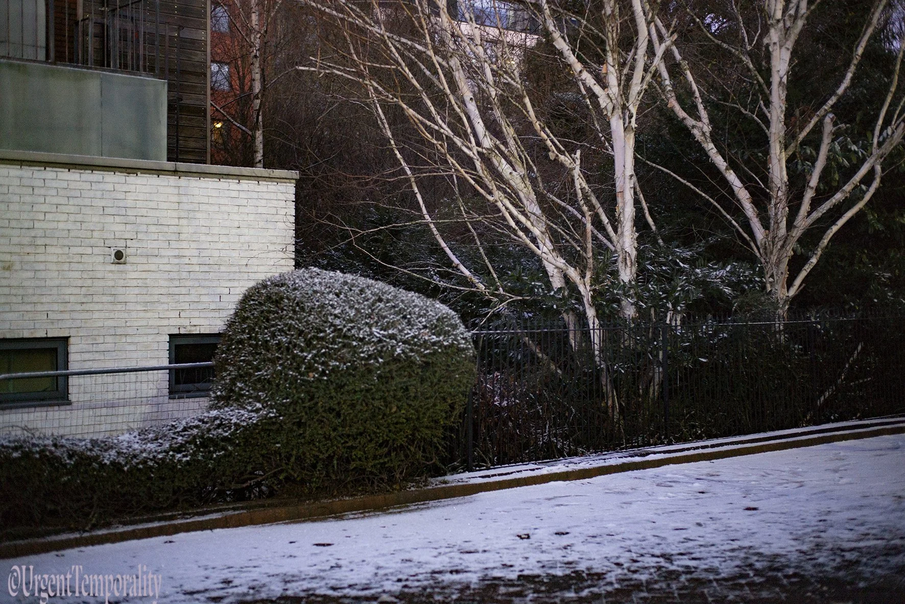 The light attracted me as the mix of light source’s gave it a glow that I wasn’t sure would come across in the image, as well as the combination of whites, wall, tree, snow etc. It is a very white image.